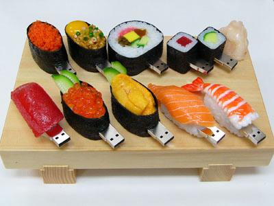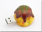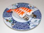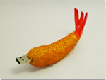上の写真をみるとお寿司10カンとエビフライ、シュウマイ、たこ焼きである。誠においしそうだ。しかし、よく見るとそれらからUSB端子がのぞいているのである。 実はこれら、USBメモリなのである。お寿司の形のSushiDiskとエビフライ・シュウマイ・たこ焼きの形のFoodDiskだ。お寿司や各食品の中に128MB又は32MBのメモリが内蔵されており、通常USBメモリと同じ様に使うことができる。しかも、「Foodサンプルの成型には、東京かっぱ橋道具街を代表する食品サンプル製造・販売業の佐藤サンプル様にご協力頂きました。生産は一個一個手作りで行われ、各Foodサンプルを忠実に再現いたしました。」との事で、実際に製品を見てもかなり本物に近い出来だ。