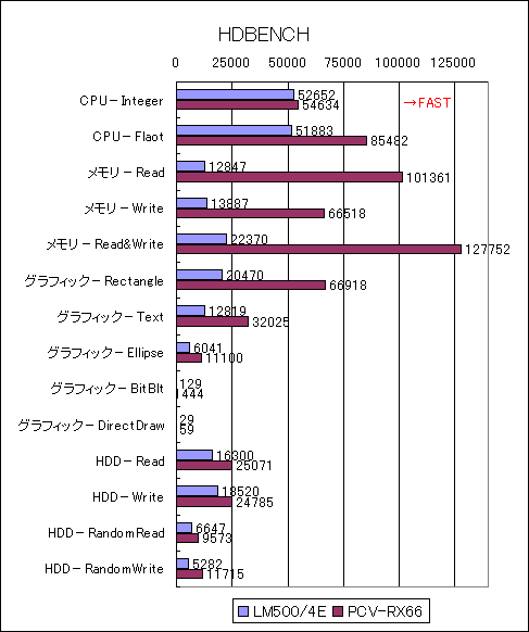 本機で様々なベンチマークテストを実行してみた。我が家のもう一台のパソコンであるデスクトップパソコン「VAIO PCV-RX66」(以下RX66:詳しくは、ロードテスト第5回参照)と比較してみることにする。