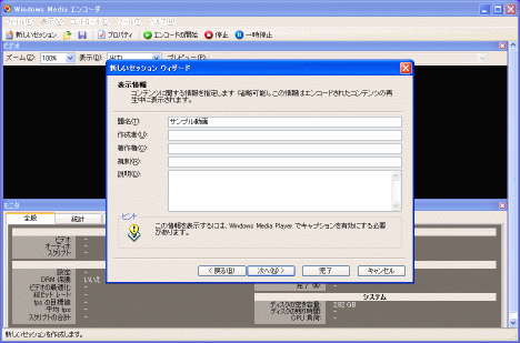 ここでは題名、作成者などの動画の情報を入力する。入力しなくてもよい。