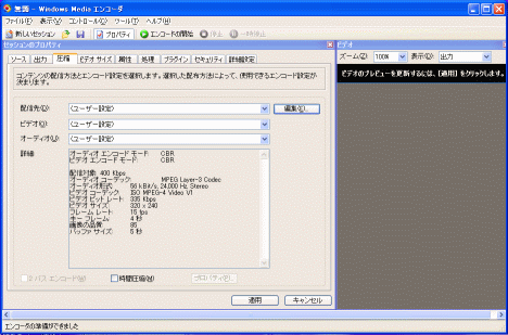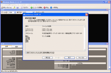 図のような画面に戻る。ここで、「エンコードの開始」をクリックすると、ザウルスで再生可能な形式でエンコードが開始される。