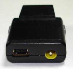 下面には変換アダプタを接続する端子がある。このアダプタはUSBケーブルとACアダプタを接続するためのもので、USBケーブルを接続することでデータ転送が行え、付属のACアダプタを接続することで充電できる。これは少し気になる所で、できればUSBとACアダプタはこういったアダプタなしで接続できるようにして欲しかった。万が一このアダプタを忘れた場合、充電を行うことも出来ず、かといって乾電池アダプタのような物も用意されないため、乾電池で代用することも出来ず、どうにもならなくなってしまう。 一方、一つうれしい点はこの機種からUSB経由でも充電が行えるようになったことだ。データ転送時はACアダプタに接続する必要があるのは残念だが、USBケーブルとアダプタさえあれば、とりあえず充電はできるのは安心感がある。ちなみにACアダプタ接続時は80%までの充電が1時間、フル充電は3時間だが、USBの場合は80%までが3時間、フル充電が5時間とACアダプタより2時間長くかかる。
