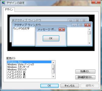 現在の設定は「Windows Vista ベーシック」になっていた。その「ベーシック」というのがいかにも怪しい。そしてその上には「Windows Aero」の文字が……。試しにこちらに変えてみると、無事Aeroが使えるようになった。インストール時に適切な設定が自動的に成されるだけで、動作スペックを満たしていないとAeroが使えないというわけではないようだ。では、無事にAeroがONになったWindows Vistaになったので、色々なところを触っていこう。