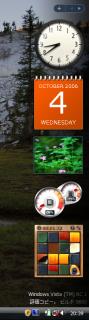 また、ガジェットは、サイドバーから取り出すことができ、そうすると大きさが変わるものもある。例えば、カレンダーはサイドバー内にある時は「日めくり」だが、取り出すと1ヶ月分のカレンダーも同時に表示されるようになる。