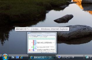 もう一つの面白い機能が、タスクバーに表示された各ウィンドウのボタンにカーソルを合わせると、ウィンドウが縮小表示(サムネイル表示)されることだ。最小化したウィンドウも、開くことなくカーソルを合わせるだけで確認できるので、非常に便利だ。