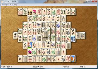 最後は「マージャン タイタン」である。これは一般的に「上海」と呼ばれているゲームである。積まれている麻雀牌の中から同じ牌を組み合わせて消していくのである。他の牌が取りたい牌の左右両方にある時や上に積まれている時は消すことが出来ない。確かにルールは「上海」なのだが、牌が麻雀牌のようで麻雀牌ではないのだ。緑の線と赤い線の組み合わせで出来ている牌は一見区別が付きにくく、雲なのか風なのかの牌は色違いが3色あるのも分かりにくい。ただ、デザインは美しいので、OSに付いているゲームとしては上等だろう。