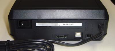 裏面にはUSB端子とeSATA端子の両方がある。USB端子は「ミニB端子」ではなく、通常サイズの「B端子」である。その右にはパソコン電源連動機能のON/OFFを切り替えるスイッチがある。電源スイッチも裏面である。