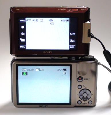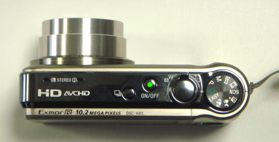 ちなみにディスプレイは3.0型と十分な大きさである。前機種のDSC-T77も3.0型であったが、縦横比16:9のワイドディスプレイであったため、実際には(ワイドの写真を撮影するとき以外は)、ディスプレイの左右に黒帯があり、その部分にタッチパネル用のボタンが配置されていた。その反面DSC-HX5Vは縦横比が4:3のディスプレイであるため、画面いっぱいに映像が表示できるため非常に見やすい。液晶は光沢タイプだが、写り込みも少なく表示自体も美しい。液晶ディスプレイは合格点と言える。ちなみにフルハイビジョン動画撮影時は、撮影する動画が16:9のワイドとなるため、上下に帯の入った状態になる。