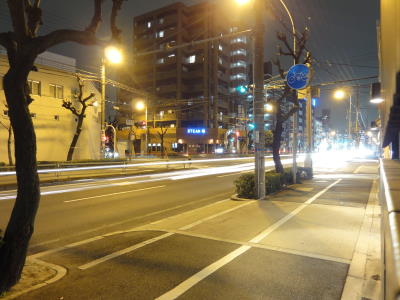 1枚目の写真は夜景を「高感度モード」で撮影した写真、2枚目は同じ場所で30秒の長時間露光を行った写真である。1枚目の写真はただの夜景にしか見えないが、長時間露光で撮った夜景は、明るく写っているだけでなく、街の光が美しく光っており、幻想的な写真になっている。また3枚目は、街灯などがあり多少の明かりがあるため、露光時間を10秒にして撮影した写真であるが、道路を走る車のライトが筋状になり、これまた幻想的な写真ができあがっている。このように長時間露光機能を使うと、一風変わった美しい写真が撮れるのである。 ただし、手持ちでの撮影では、どんなに制止していようと思っても細かくブレてしまって、長時間露光撮影ほぼ不可能である。三脚とは言わなくても、手すりや机の上、塀の上など、どこかに固定する必要がある。また高感度撮影をした後は、30秒露光で処理に33秒ほどかかってしまう。手軽にスナップ写真を撮るときは高感度撮影や手持ち夜景機能などを使って撮影すればよいが、時には長時間露光を使うと、幻想的な写真が撮影できておもしろいだろう。また設定は30秒や10秒以外にも設定でき、5秒以上の設定だけでも30秒、25秒、20秒、15秒、13秒、10秒、8秒、7秒、5秒といった細かい設定も可能なので、明るさに併せて時間を設定すればよい。このようにマニュアル設定ができるあたりが、コンパクトさ優先の機種とは違う点だろう。長時間露光は必須の機能ではないが、付いていると楽しめる機能の一つである。