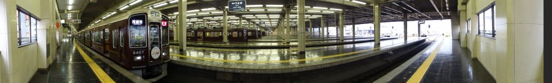 | スイングパノラマのワイドで撮影した写真である。270度までのパノラマが撮影できるため、きれいにカーブを描いた特殊な写真を撮ることが可能である。正反対の方向が同一平面になっているのがおもしろい。 |
