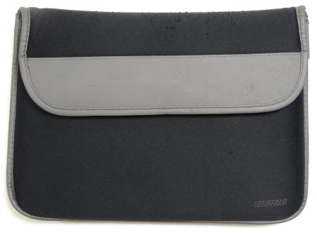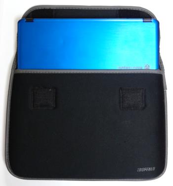 これまで使っていた「Aspire One D250」の気に入っていた点として、キャリングケースが付属していたことにあった。低反発素材などではなく、ポケットなども付いていなかったが、ケースの一方の開いている所からパソコンを入れ、あとはマジックテープ付きのフラップ(フタ)をかぶせるだけという簡単さが気に入っていた。またサイズがぴったりで、ショルダーバックに入れて持ち歩く私としては、カバンの中で余計な場所を取らない事も気に入っていた。今回の「LB-S210B」にはケースは付属していないため、探すこととした。しかし、低反発素材でファスナーで三方を閉じるタイプは、マチが無く、低反発の2枚のクッションで本体を挟むような形状であるため、本体サイズよりかなり大きくなってしまう。もっとシンプルな物はないかと、ヨドバシカメラマルチメディア梅田で探していたところ、探せばあるものである。それはバッファローコクヨサプライの「BSINF11WBK」という製品だ。本体サイズは340×235×26.5mmで、参考収納寸法は273×210×24mmと書かれている。「LB-S210B」のサイズが288×195×36mmなので幅が1.5cmほど大きく、厚みもあるが、実際に入れてみると、「LB-S210B」用に作られたのではないかと思うほどぴったりであった。またただのウレタン素材だが、価格が680円と安い。希望通りの物だったので購入。ヨドバシカメラマルチメディア梅田で680円(10%ポイント還元)であった。