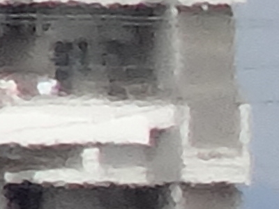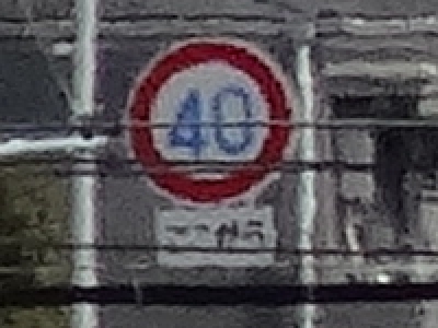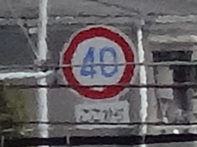 実際に40倍全画素超解像ズームで撮影した物と、20倍光学ズームで撮影した物を2倍に拡大した画像を比較してみよう。全体像は、写真全体を400×300ドットになるように縮小したもので、アップ1〜4はそれぞれ、縮小を一切せずに、一部分を400×300ドットに切り出したものである。アップ1を見ると、道路標識のノイズがなくなり、曲線部分のジャギーも無くなっている。続いてアップ2を見ると、同じくノイズが無くなっている。しかし、全体に、べた塗りになり、絵画調になっている。また、ガードレールや柵などが直線的では無くなっている。アップ3を見ると、同じく絵画調になっているほか、細いケーブルの一部が消えている。アップ4は明らかにノイズが少なくなり、綺麗に見える。これらを見ると、ややべた塗りの絵のようになってしまいがちだが、ノイズやジャギーが減り、全体に綺麗に見える。アップで見るとこういった感じだが、実際に高解像度の画面で見たり、印刷すると全画素超解像ズームの方が解像感があるような、全体にノイズによるざわつきが少ないようなイメージを受け、綺麗に見える。光学ズームと同じレベルと考えるとガッカリするが、デジタルズームよりは綺麗にズームでき、十分に使用できるレベルである事がわかった。ズームに関しては、本体サイズから想像も付かない優秀さだ。