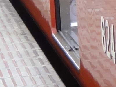 続いて、シーンセレクションで「高感度」に設定し、ISO感度がISO1600になるようにして撮影を行った。すると、どちらも同じ程度の明るさにとれているにもかかわらず、「DSC-HX30V」はシャッタースピードが1/160秒に、「DSC-HX5V」は1/125秒に設定された。つまり、「DSC-HX30V」の方が、同じISO感度ならシャッタースピードが一段速くなるようだ。前述のISO感度オートの時と同じく、DSC-HX30の方が光への感度は高いようだ。 さて同じく全体像1枚とアップ3枚の画像を見てみよう。全体像を見ると、どちらも発色も良く、非常に綺麗に撮影できているように見える。アップの写真を見ると、確かにISO感度をオートにしたときのISO400よりはノイズが増えているが、それでもそれぞれの質感を損ねるほどではなく、比べてみないと分からないほど十分に綺麗に撮影できている。「DSC-HX30V」の方が、やや乗車口の金属ステップのノイズや、ライトの周囲のノイズが少なく、質感がより綺麗に表現されているように見える。ノイズ量では不利かと思われていた「DSC-HX30V」だが、比較してみるとむしろ優れていることが分かり安心である。 |
