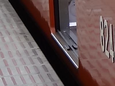 それでは、やや暗い場所での画質をみていこう。撮影場所は、阪神電鉄梅田駅である。改札のある側ではなく、トンネルにつながっている側のホームの端で撮影している。地下駅であるため、蛍光灯の光はあるものの、地上駅と比べると薄暗い印象だ。一般の室内での撮影に近いと思われる。 |