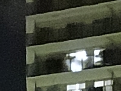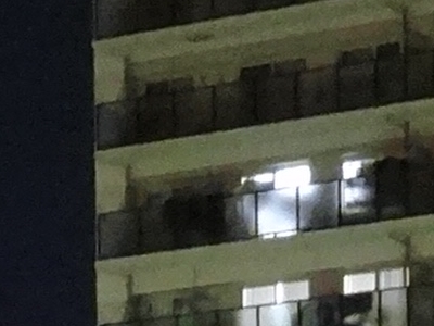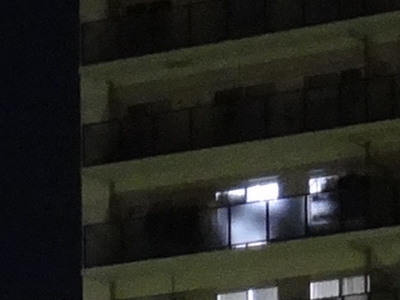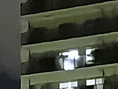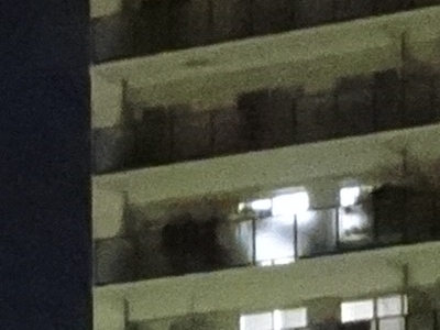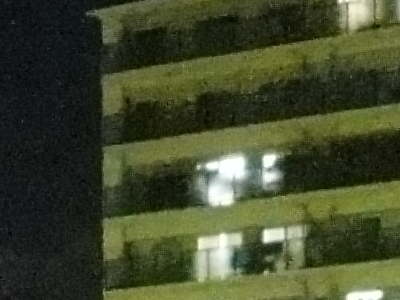 続いて夜景である。夜景で設定を「おまかせオート」にすると、「DSC-HX30V」と「DSC-HX5V」のどちらもISO感度はISO3200まで上がり、シャッタースピードは1/4秒にまで下がった。この点では同等と言える。写真全体を400×300ドットまで縮小した「全体像」と、縮小せずに400×300ドットに切り取った「アップ」写真を見てみよう。「DSC-HX30V」の方が画素数が上なので、同じ400×300ドットに切り取っても大きく写っている。 全体像を見ると、写っている明るさなどは同等レベルに見えるが、色合いが異なっている。「DSC-HX30V」では白っぽく、「DSC-HX5V」では黄色っぽくなっている。10枚撮影したが、10枚ともこの色合いだった。目で見た感じは「DSC-HX30V」に近く、暗いシーンでも正しい色合いになるようになったのとも考えられる。アップ写真を見ると、ISO3200でかなり暗いシーンにもかかわらず、ノイズは非常に少ない点では共通しているが、「DSC-HX30V」の方がより解像感があり、ベランダの桟なども綺麗に写っている。暗いシーンでの画質も向上している事がはっきりとわかった。