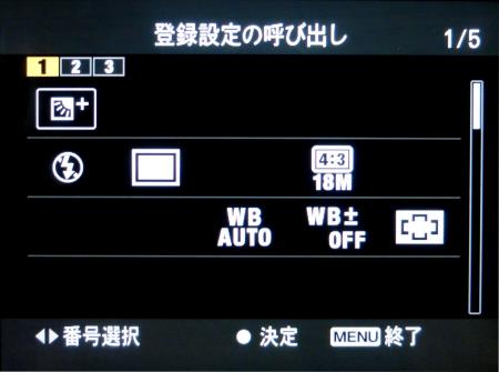 撮影として新たに「MRモード」が搭載されている。「MRモード」は簡単に言えば設定した内容を保存できるもので、3つまで保存できる。保存できる内容はシーンやフラッシュモード、撮影画素数、ホワイトバランス・フォーカス・顔検出の設定、動画の画質や手ぶれ補正モード、さらにはグリッドラインの有無や全画素超解像ズーム・デジタルズームのオン/オフ、風音低減や、赤目軽減、目つぶり通知の設定、さらに画面表示のモードまで登録しておけるのである。おすすめの設定を登録しておいても良いし、家族で使うときそれぞれが使いやすい設定を登録しておくという方法もある。簡単に、モードダイヤルから無くなった、「逆光補正HDR」と「手持ち夜景」モードを登録しても良い。ただ、気になるのは「MRモード」へ移行した際の動作だ。例えば「おまかせオート」で被写体にズームした状態で、やはり「MRモード」で登録した設定の方が良いと考えて「MRモード」に切り替えると、ズームが解除されてしまうのだ。逆に「MR」モードから「おまかせオート」などへ移行した場合はズームは解除されない。確かに、登録する内容に「全画素超解像ズーム」や「デジタルズーム」のオン/オフに関する設定があるため、例えば全画素超解像ズーム状態で、全画素超解像ズームオフで登録されているモードに切り替えるとややこしいため、ズームが解除されるのかもしれない。それでも光学ズームをオフにする設定はないため、せめて光学ズームだけでも解除されないで欲しかった。細かい点だが、せっかく被写体に合わせておいたのが1からになるのは不便だ。