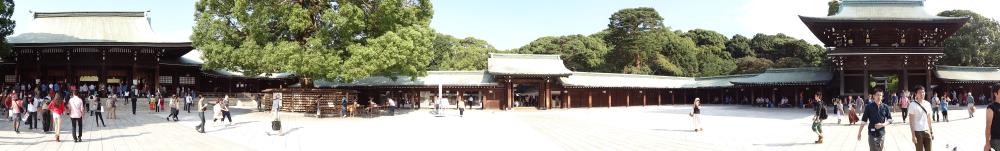 | 「DSC-HX30V」の「スイングパノラマ」で撮影した画像である。使い捨てカメラなどにあったパノラマ写真と異なり、実際には反対側にある風景が同じ面に写る。写真一枚ではどうしても写る範囲が狭く、雰囲気が伝わらないときに便利だ。この写真でも、立っている位置の左右に建物が2棟あるのではなく、180度反対側の建物が写っている。 |