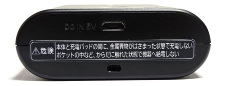 付属品はmicroUSBケーブルと、ACアダプタである。USB充電の機器の場合よくあるパターンとしては、ACアダプタはアダプタ部分だけで、アダプタにUSBケーブルを挿せるようになっていて、USB充電とケーブルを兼用する場合が多いが、「QE-PL201」の場合は、ケーブルの先がmicroUSB形状になったACアダプタが付属している。USB端子の形状でありながら専用のACアダプタなのは珍しいところだ。ちなみに、付属のACアダプタを使用した場合の充電時間はカタログスペックで7時間となっている。これは1A入力が可能なためで、パソコンのUSBポートなどからでも充電は可能だが、USB2.0の場合500mAとなるため倍の14時間となっている。そのほか無接点充電パッドの「qi」に対応しているため、対応充電台を持っている場合は、上に乗せるだけで充電できる。その場合もACアダプタ使用時と同じく7時間で充電できる。
