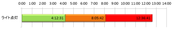 つづいては、単純にUSB接続のLEDライトを点灯し続けた時間を計測した。使用したのはELECOMの「LEC-USB1N01BK」である。1.3WのLEDを使用し、明るさは400luxと、USB給電のLEDライトとしてはかなり明るい方の製品だ。カタログのスペックでは消費電流は260mAとなっている。 結果を見ると、4時間12分31秒で残量表示LEDがオレンジに、8時間5分42秒で赤になり、12時間36分41秒でライトが付かなくなった。思った以上に長時間使用することができた。これならば、夜間や停電時などの照明として十分に使用できる時間だ。「QE-PL201」と共にUSB接続のLEDライトも携帯しておくと何かと便利かもしれない。ちなみに筆者は、夏場に8cmファン内蔵のUSB扇風機を携帯し、うちわで扇ぐ代わりにこれで涼んでいたが、自分で仰がなくて良い分、非常に便利であった。機器への充電以外の使い方もいろいろとあるわけである。