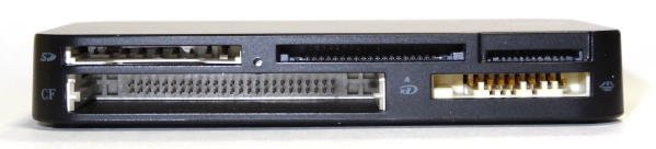 それでは、「BSCR15TU3BK」を見てみよう。まずは外見である。色はつや消しのブラックで上品な感じである。本体サイズは85×49×13mmで重量は35gである。「BSCRSDXU3BK」が69×33×15mmで17gであったため、縦横が16mmずつ大きくなって、やや薄くなり、重量は倍増である。とはいえ、多種のメモリカードに対応している割には大きくないと言える。前面はメモリカードスロットが2段になっているが、上段にSDカード、xDピクチャーカード、microSD/メモリースティックMicroといった厚みの薄いカードのスロット3種、下段にコンパクトフラッシュとメモリースティック/メモリースティックDuoという、最初の3つより厚みがあるカードのスロットを2種搭載することで、本体の厚みを少しでも薄くしようという努力が見られる。 miniSDカードに関しては、SDカードサイズのアダプタを利用しなければならないが、microSDとメモリースティックMicroに関しては専用のスロットを、メモリースティックDuoはメモリースティックスロットに直接挿せるようになっており、できる限りアダプタ無しで対応できるように工夫されている。小さいながら、各スロットの縁、または上面に、スロットに挿し込めるメモリカードのマークが書かれているため、どのスロットに挿すのか迷わずにすむ。側面にはメモリカードスロットはない。 また、SDカードはUHS-Iの高速転送に、メモリースティックも8bit転送に、コンパクトフラッシュも最高速のUDMA7転送に対応している。それぞれのメモリカードの高速転送規格に軒並み対応することで、できる限り高速な転送が行える製品となっている。 背面はmicroUSB端子があり、ここに付属のケーブルを接続する。もちろんUSB3.0対応である。「BSCRSDXU3BK」では本体にUSB端子を内蔵していたが、「BSCR15TU3BK」は一般的なUSBケーブルで接続するタイプである。直づけではなく、形状も一般的なmicroUSBなので、別途短めや長めのケーブルを使用したり、現在ではまだ存在しないようだが、巻き取り式ケーブルなどを使用することもできるだろう。付属のケーブルは54cmとなっている。USB3.0対応であるためケーブルが太く、取り回しはやや不便だ。