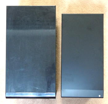 ちなみに、これまで使ってきた「ドライブドアSATAボックス5BAY(EX35ES5)」と比較してみると一回り小さくなった印象だ。こちらは152×210×280mmであり、「裸族の集合住宅5Bay USB3.0&eSATA(CRSJ535EU3)」の130×185×260mmと比べても、全体に2cmずつとが小型化したような感じである。また前面はメッシュ状のフタが無くなった分ハードディスクベイがはっきりと分かり、パソコンの周辺機器らしさは強くなったが、光沢のあるブラックからつや消しのブラックになったため、落ち着いた雰囲気となり指紋なども気にならなくなった。