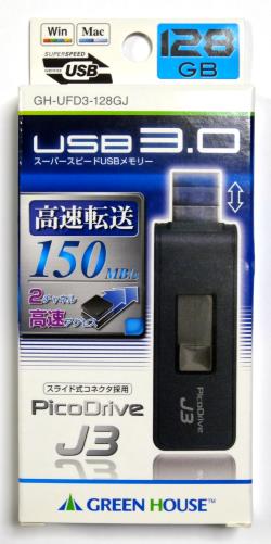 USB3.0対応 128GB USBメモリ グリーンハウス PicoDrive J3 GH-UFD3-128GJ (2013年12月25日購入・2017年2月1日著)