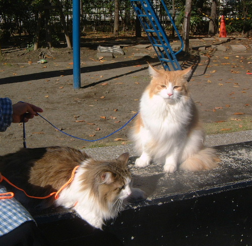 マリンは、リードを見せただけで逃げ回り、エレベーターに乗ったとたんニャ〜ン!ニャ〜〜ン!