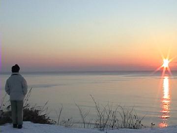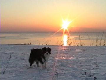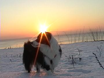 初日の出。 毎年見れるんだ。 足が冷たいけど・・・カメラ目線で。 お日様のかんむり♪