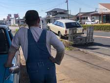 去っていく旧愛車の姿を見送る旧オーナーさんは少しさびしそうでしたが、大事にしてくれそうな方にお譲りできたと満足されてました。(2017年8月)