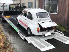 1/1のおもちゃというべきフィアット500のアバルト695レプリカはもう一台695レプリカをお持ちという方の元へ嫁いで行きました。積載されて運ばれて行く姿をオーナー様は最後まで見送っていらっしゃいました。 (2019年5月)