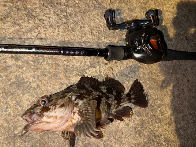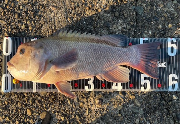 | 河野さん アコウ 45cmが釣れました 体高の良いアコウが釣れましたね!(^^)! ノマセのアジもよく釣れてました(*^^)v |