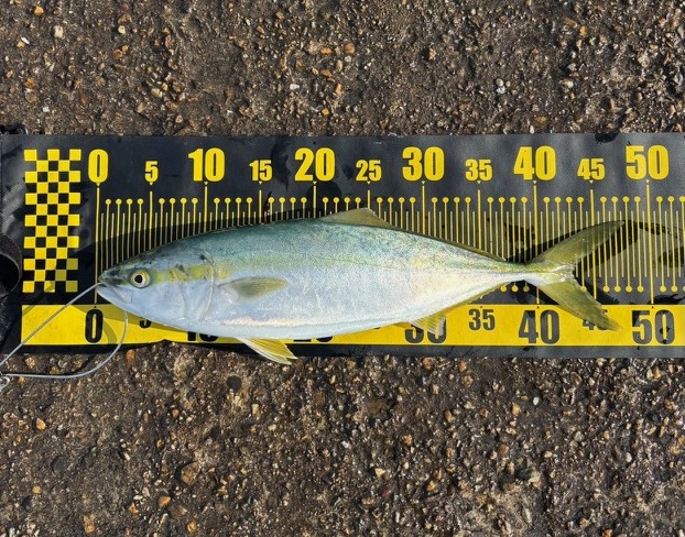 | 井根さん ノマセ釣り ハマチ 〜47cm 2匹釣れました 狙い通り青物釣れました!(^^)! ノマセでキビレも釣れたそうです(*'▽') |