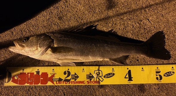 | 半夜便の釣果 宮本さん シーバス 54cm 狙い通りにシーバス釣れました!! リベンジ成功ですね( *´艸`) 本日はご乗船ありがとうございました!(^^)! |