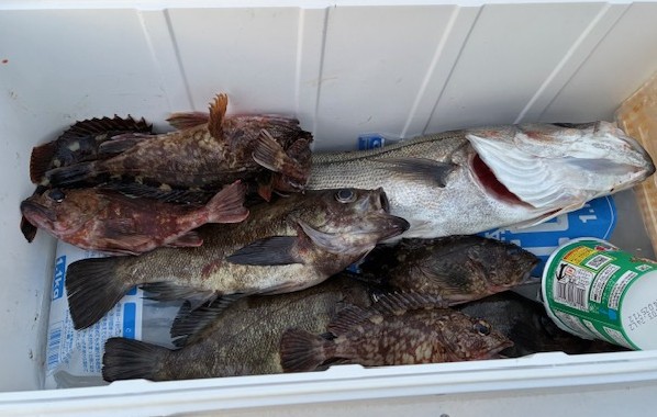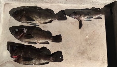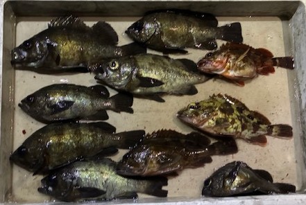 | 通し便の釣果 塩野さん ルアー釣り アコウ 〜43cm 2匹 メバル 〜23cm 8匹 ガシラ 〜18cm 4匹(持ち帰り分) 良型アコウが釣れました!! ランガンした甲斐がありましたね(^^) 良い釣果で釣り納めが出来て良かったです( *´艸`) いつもご乗船ありがとうございます(^^)/ 来年もどうぞよろしくお願いいたします(´▽`*) |