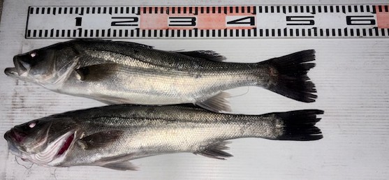 | 濱田さん ルアー釣り シーバス 〜50cm 4匹 5ヒット4キャッチで狙い通りのシーバスGETです( *´艸`) 今日は仲良しのお連れ様との釣行(^^♪ 満足釣果で帰港していただけて良かったです(*´▽`*) ご乗船ありがとうございました(^^)/ |