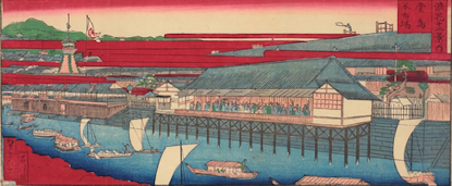 浮世絵にも描かれており、当時は江戸まで8時間で取引状況が伝わったとのこと。 また、豪商「淀屋」は、現代の国家予算に匹敵する100兆円もの資産を有したという。