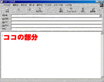 メールの場合はメッセージの作成の内容のところにカーソルがある(ココの部分)
