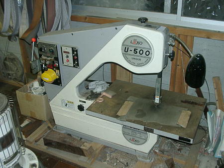 帯ノコ盤。 部品の切り出しにはもうなくてはならない必需品です。ある程度のアールも切れます。ステン用のノコが必要です。
