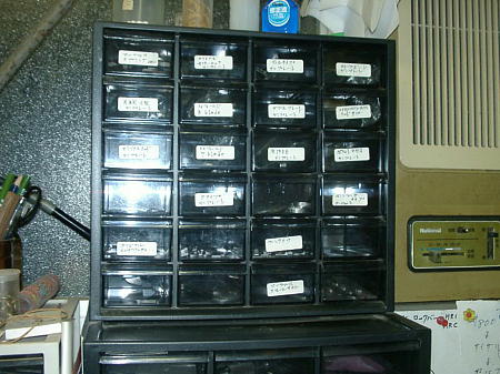 このケースはいままでに製作したプロトタイプ(マスター)を種類別に整理して保存しています。オーダーがあった時や再度作りたくなった時すぐとりだせるようにしています。