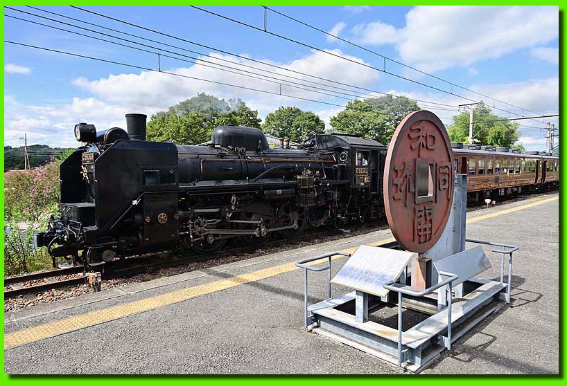 和銅黒谷駅の“和同開珎”のモニュメント。一度は絡めて撮ってみたいと思っていました!
