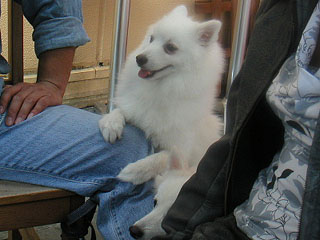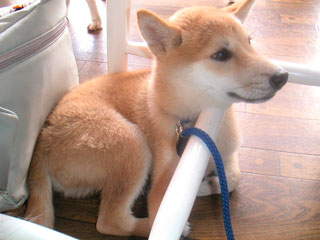 | 椅子の下で、良い子にしてるゲンちゃん 僕(サエモン)は落ち着きがなくて、 怒られてばかりでした・・・(^^ゞ |
