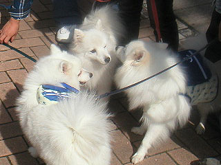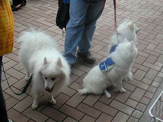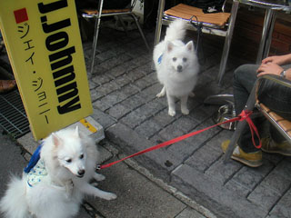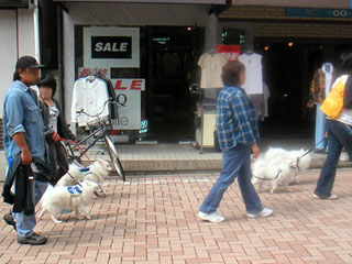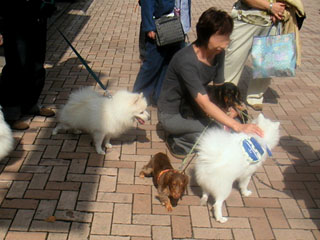 もう、道行く人々の注目の的です。(*^_^*) ワンコ連れの人でさえ、この通り 「可愛いわ〜 触らせて〜」ですって (^^ゞ |