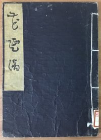 『井月全集』初版本(筆者所蔵品)。見返しには、鶴が翼を広げて一声鳴いている様子が描かれている。これはもちろん井月の絶筆「何処やらに寉の声きく霞かな」をイメージしたものであろう。(第二版以降は、カラーではなく単色で印刷されている。)