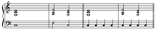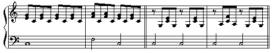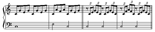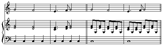 さて、これまで見てきた和声の例とは違い、コンコーネ練習曲は「メロディー + 伴奏」というスタイルで書かれています。伴奏には、さまざまな形がありますが、次のように大別して考えるとよいでしょう。