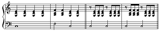 和音でリズムを刻むことです。休符を伴うこともあります。