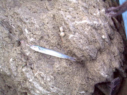Rパパさんがスベリで釣った最小記録の鰯ちゃん! よく針がかりしましたね!