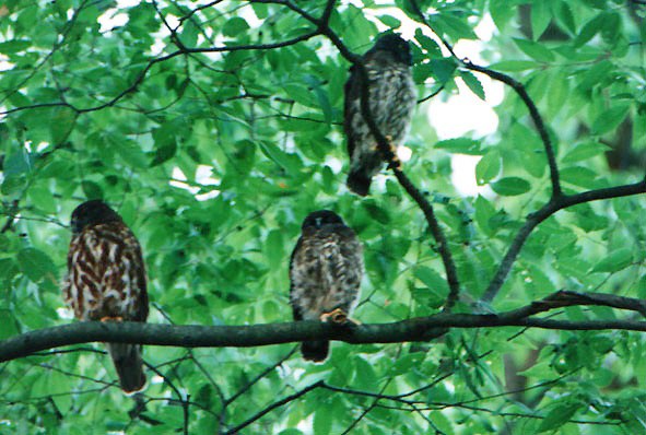 | The chickens got out of the nest on July 22, but stayed on the tree for about a week to be trained. Then all of the family flew away on July 30. We hear the year before the last Brown Hawk Owls came to the Keyaki. Will we be watching another family next year? |