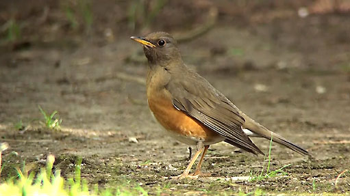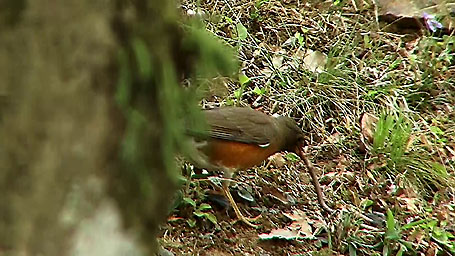 アカハラは冬鳥ですが、4月20日過ぎにはまだ滞在していました。太いミミズを食べます。