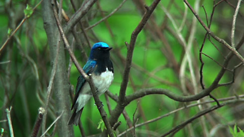 そのホウノキに、オオルリが。美声でよく囀っていました。