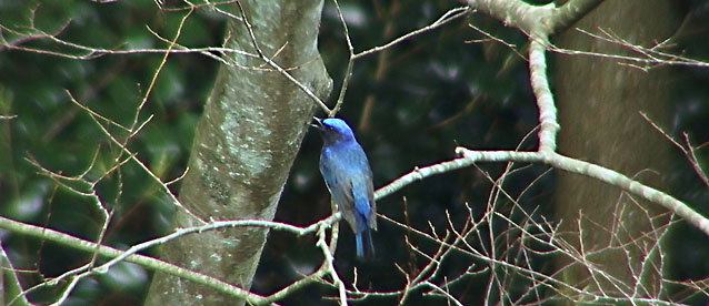 歌垣山裾野にオオルリが来て歌っていました。さえずりはまだ本格的ではなかったものの、綺麗な声を聞かせてくれました。メスも確認。