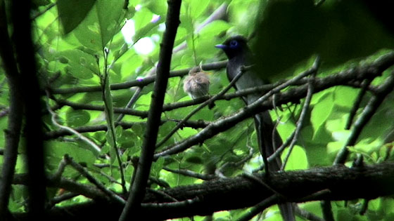 サンコウチョウのヒナです。可愛いこと!7月初めに巣立ちましたが、巣立ち直後はこうして親から餌をもらっていました。